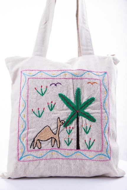 شنطة توت باج مزينة بالتطريز اليدوى الريفي -قابلة لاعادة الاستخدام – منتج مصرى